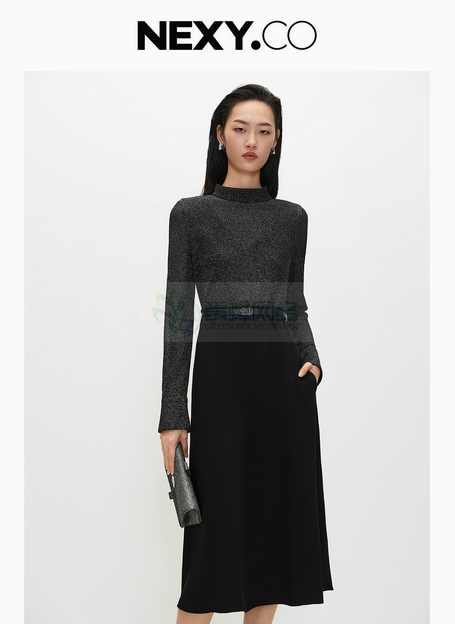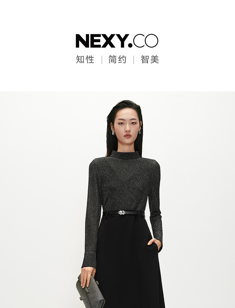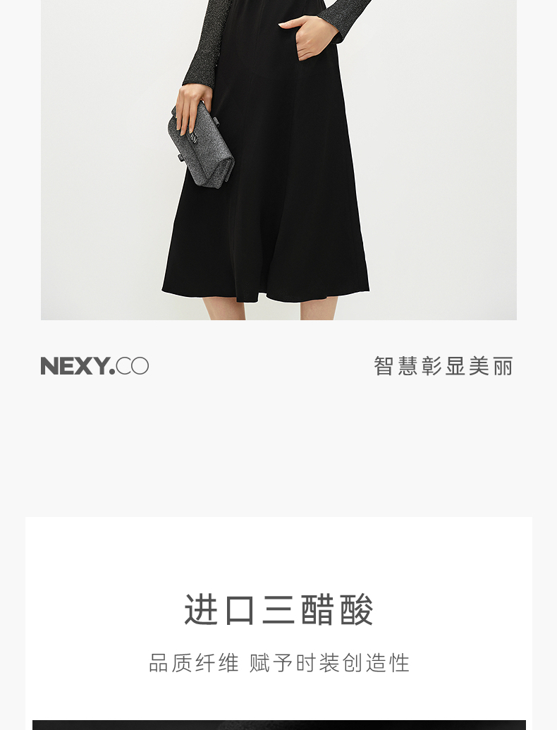 NEXY.CO/奈蔻2025秋新款气质立领银葱拼接三醋酸通勤...