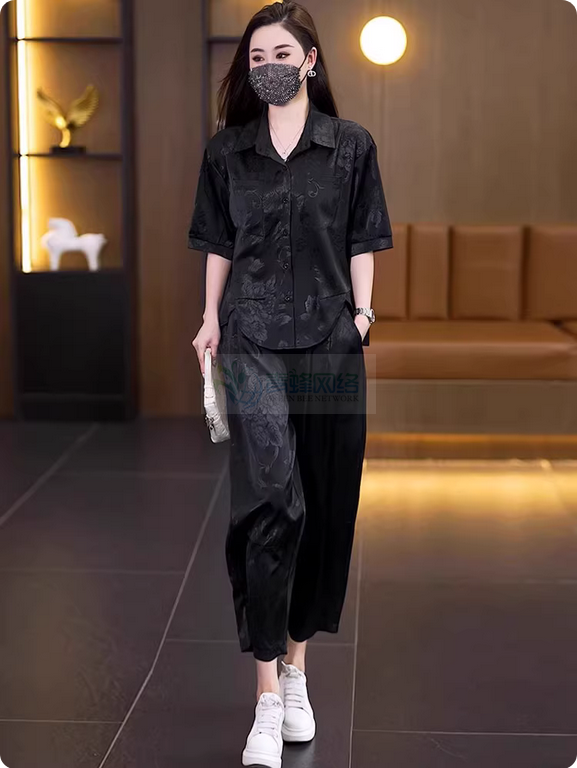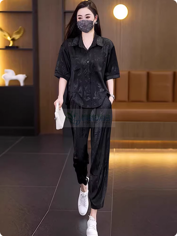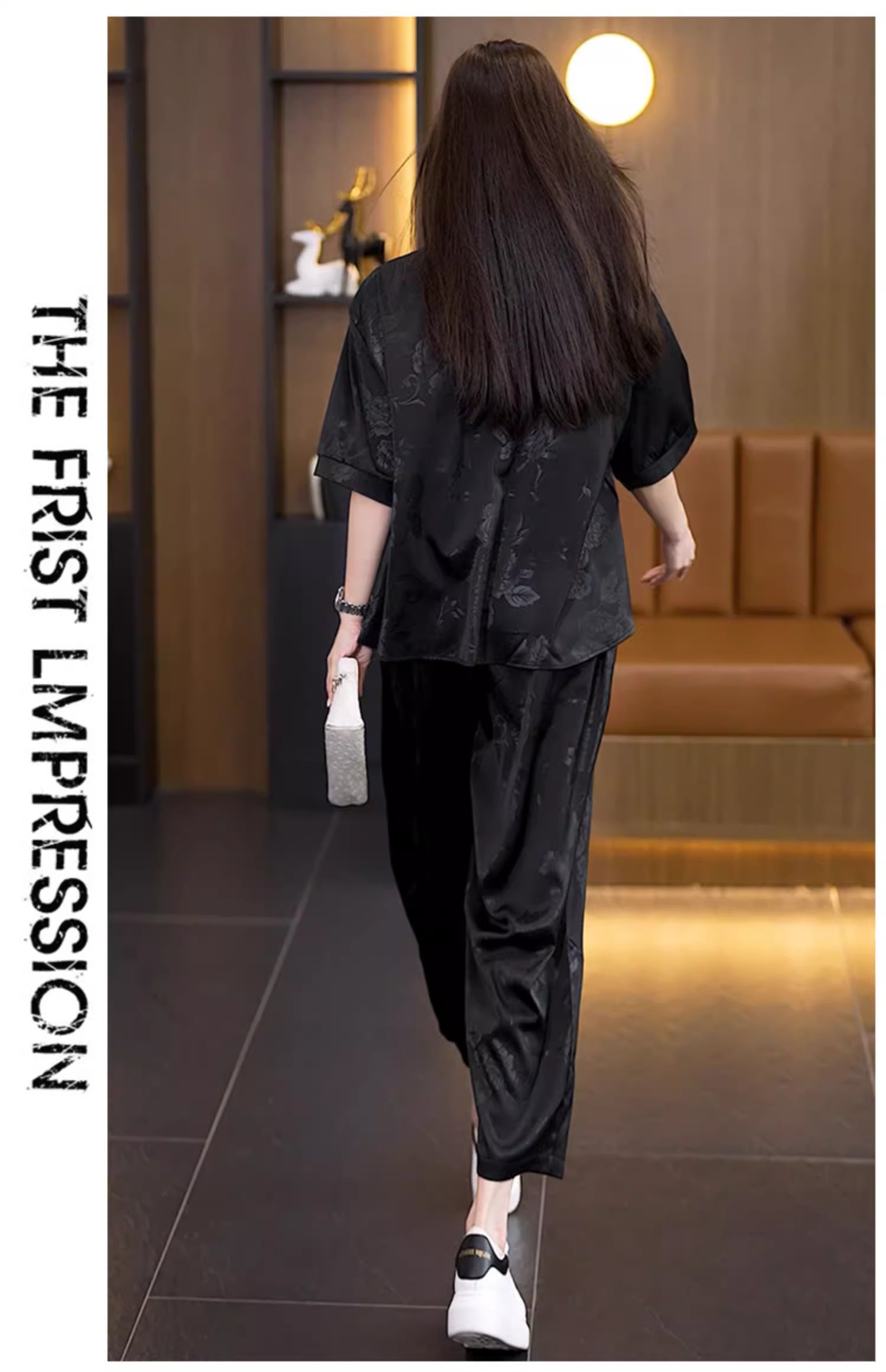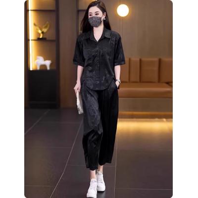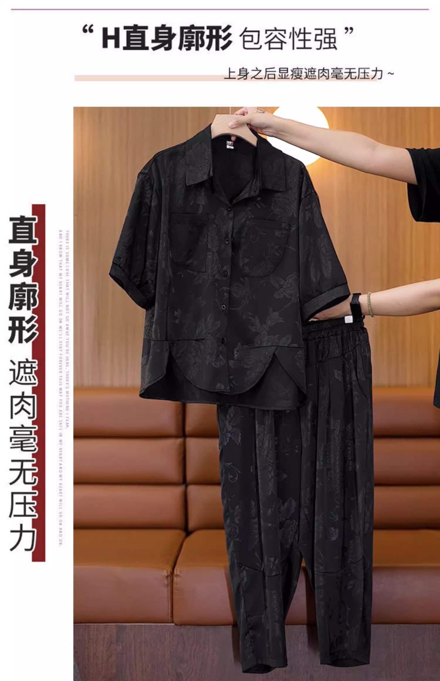 高端免烫时尚套装女2025夏季新款胖妹妹大码宽松显瘦抗皱两件...